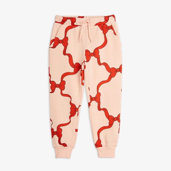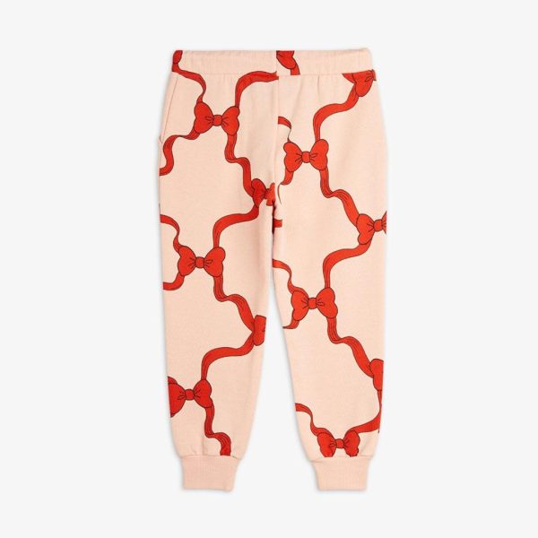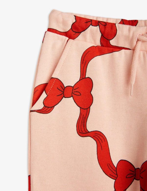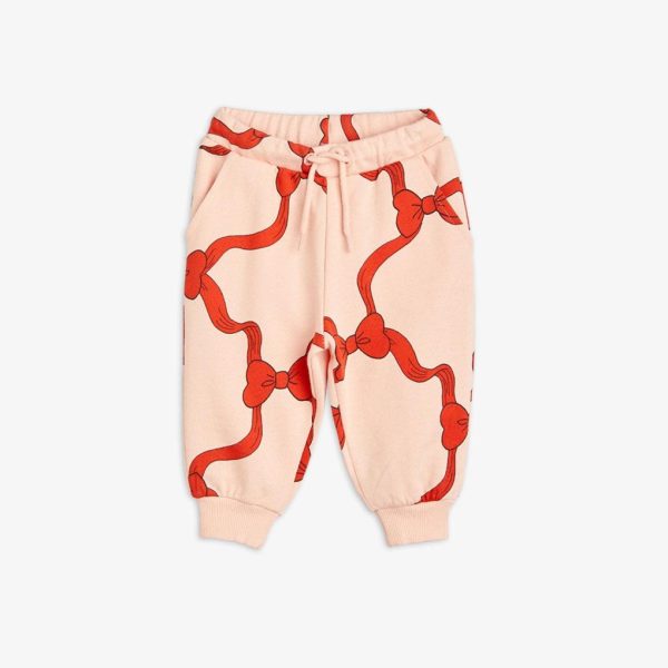 Pink sweatpants with Bow print for kids, made from GOTS certified organic cotton.