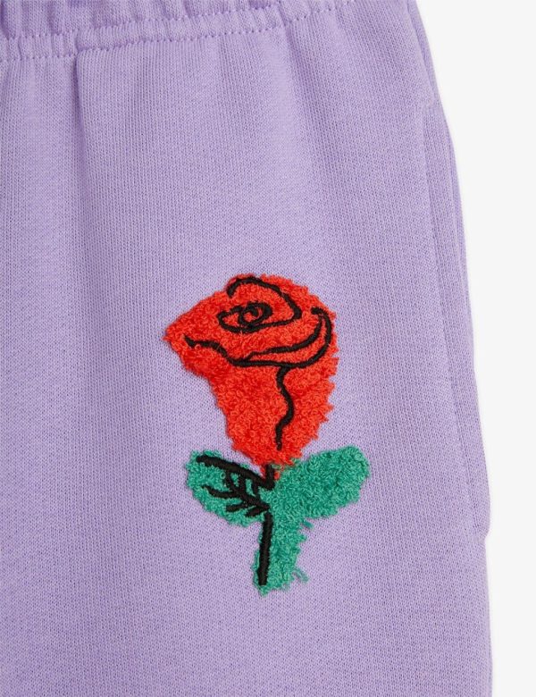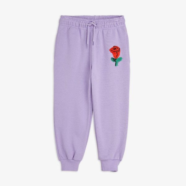 Sweatpants made of 100 % GOTS certified organic cotton. Designed with a chenille rose embroidery. Cut for a relaxed fit with adjustable elastic waist and ribbed trims. Finished with side pocket.