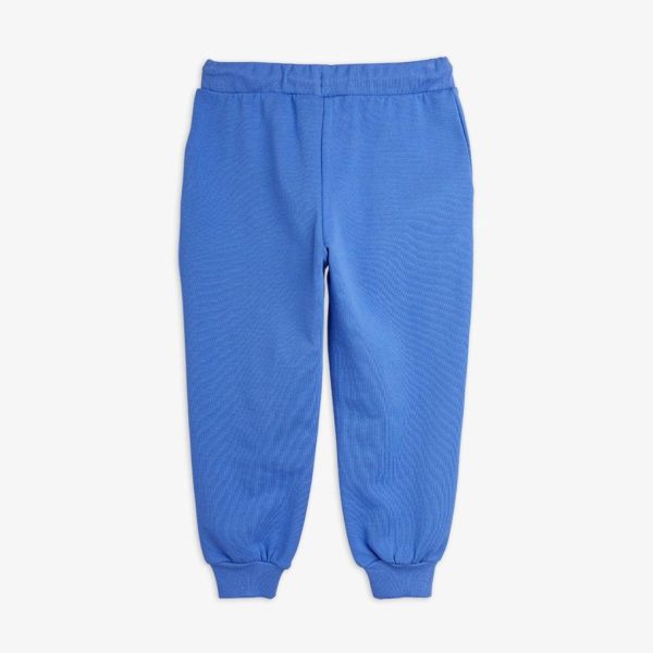 Sweatpants with chenille embroidery, made from 100 % GOTS certified organic cotton. Designed with elastic cuffs and an elastic drawstring waist along with two front pockets.