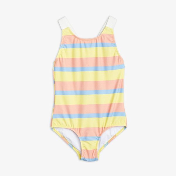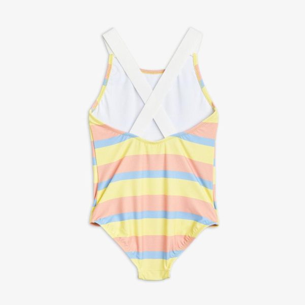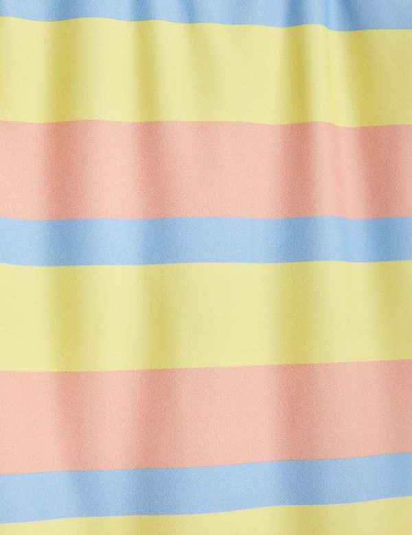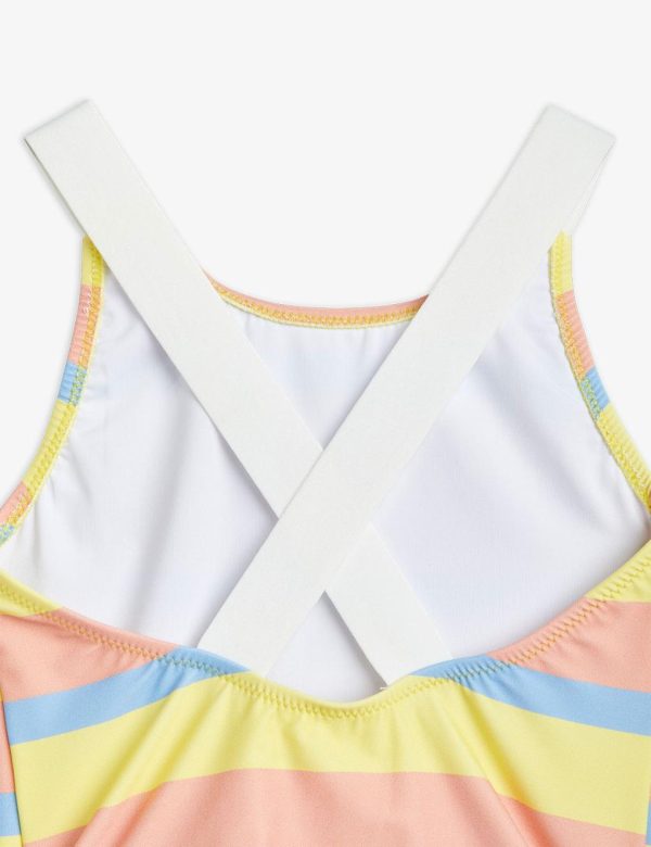Cross back UV swimsuit with an all over Pastel Stripe print, made from recycled polyamide with stretch. The fabric creates a physical barrier against the sun’s UV rays with the highest ultraviolet protection factor, UPF 50+.
