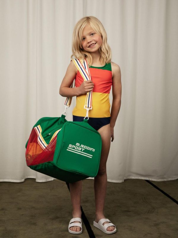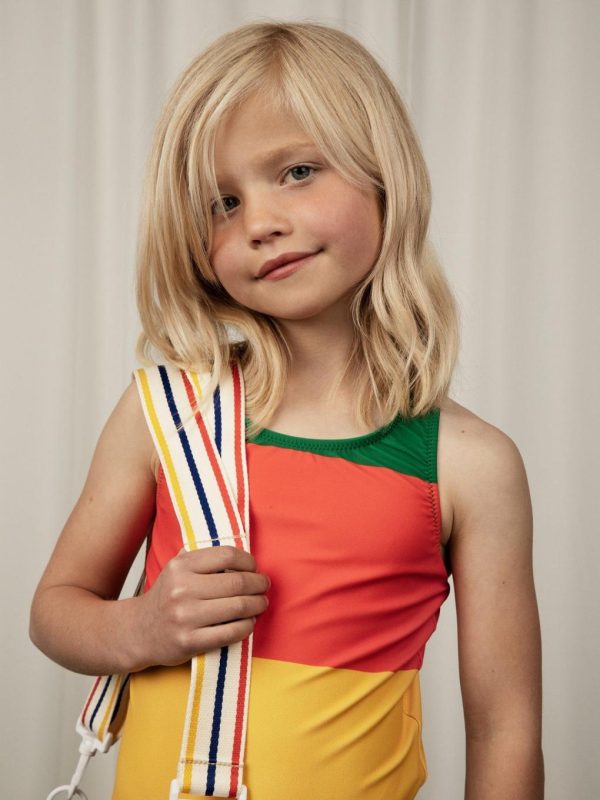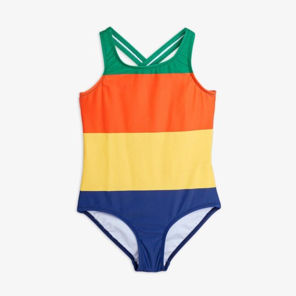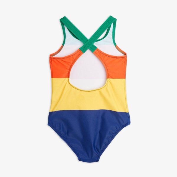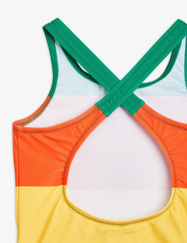 UV protective swimsuit made from ECONYL® regenerated nylon with stretch. Designed with an open back with crossed shoulder straps. The swimsuit is fully lined. The fabric creates a physical barrier against the sun’s UV rays with the highest ultraviolet protection factor, UPF 50+.