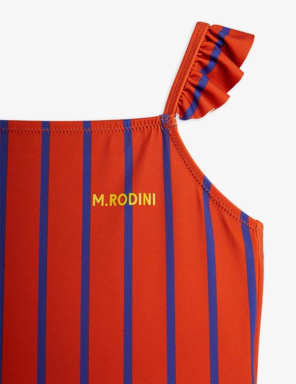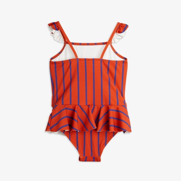 Kids Mini Rodini Swimsuits | Vertical Stripe Skirt Swimsuit Red