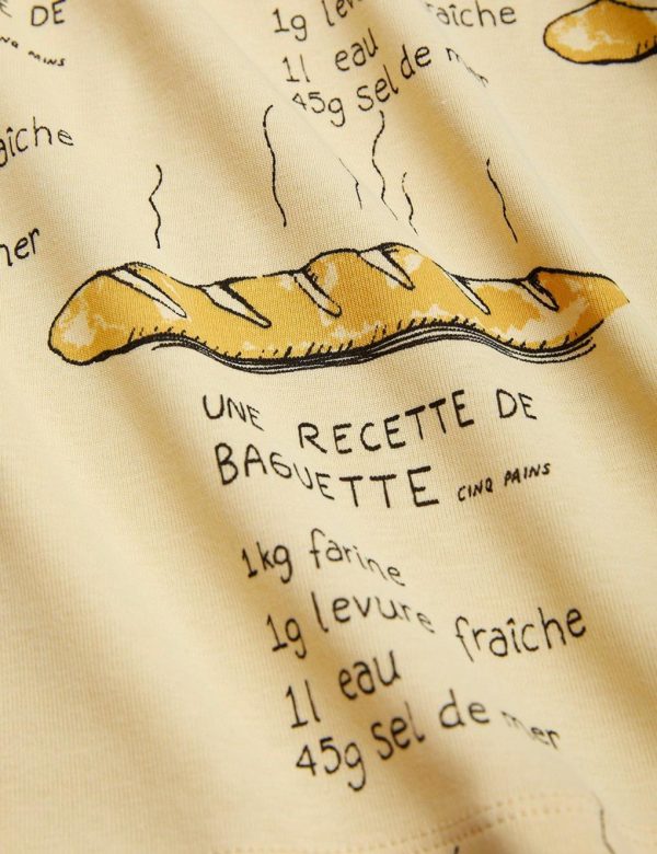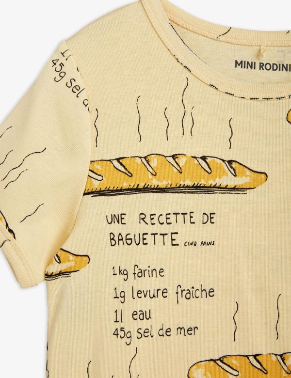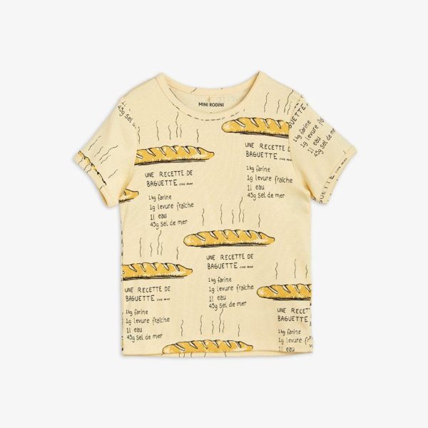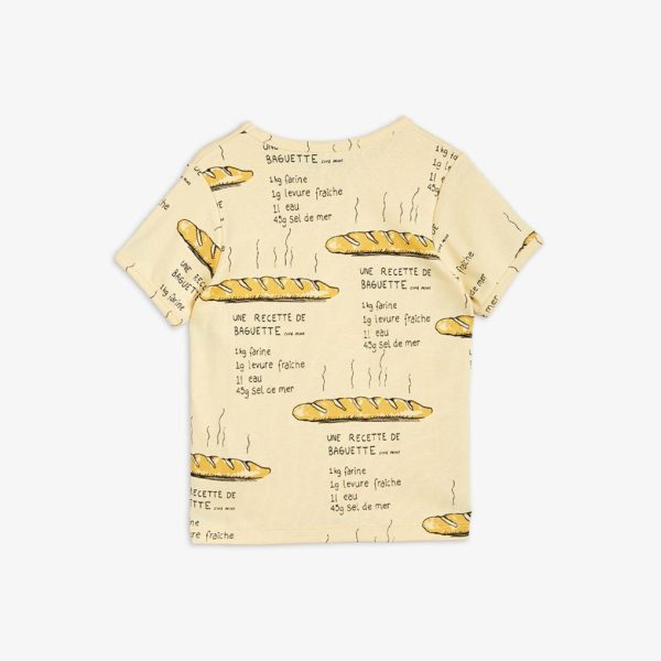 Yellow semi tight fit T-shirt in 100 % GOTS certified cotton with an all over Baguette print. Featuring bindings at neck and sleeves.