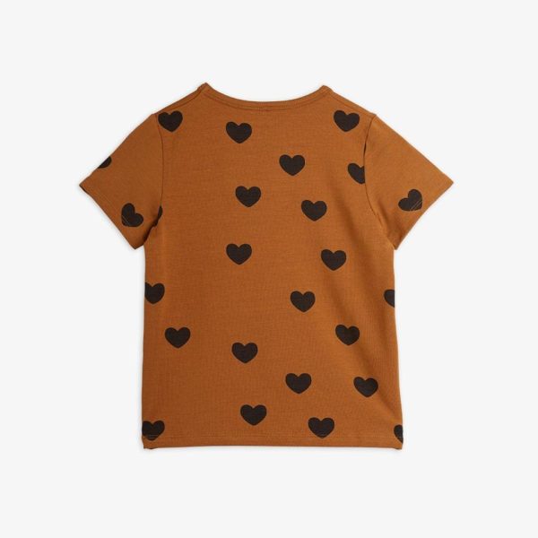 Brown T-shirt with an all over hearts print, made in soft TENCEL™ Lyocell with a hint of stretch for extra comfort. It has a regular straight fit and crewneck. The tee is designed with a Mini Rodini Panda label at the front.