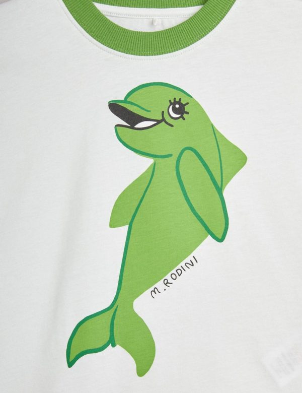T-shirt with a Dolphin print, made in 100 % GOTS certified organic cotton. Cut for a loose fit and designed with a contrasting ribbed collar.u003c/pu003enu003cpu003eModel is 114 cm/3’7″ and is wearing a size 104/110.