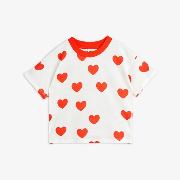 T-shirt with an all over Hearts print, made in 100 % GOTS certified organic cotton. Cut for a loose fit and designed with a contrasting ribbed collar. Sizes 56/62–68/74 feature snap buttons on the shoulder for easy dressing.