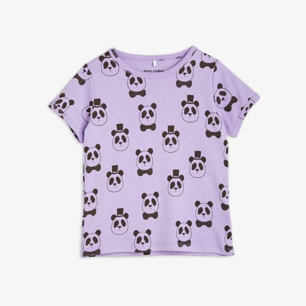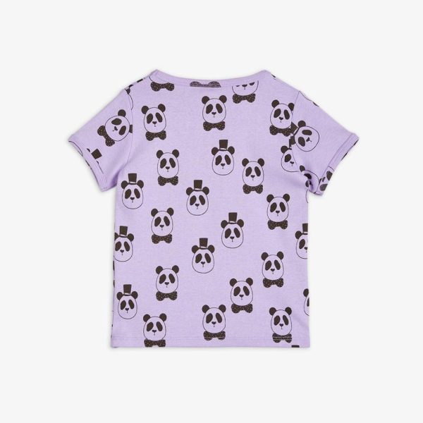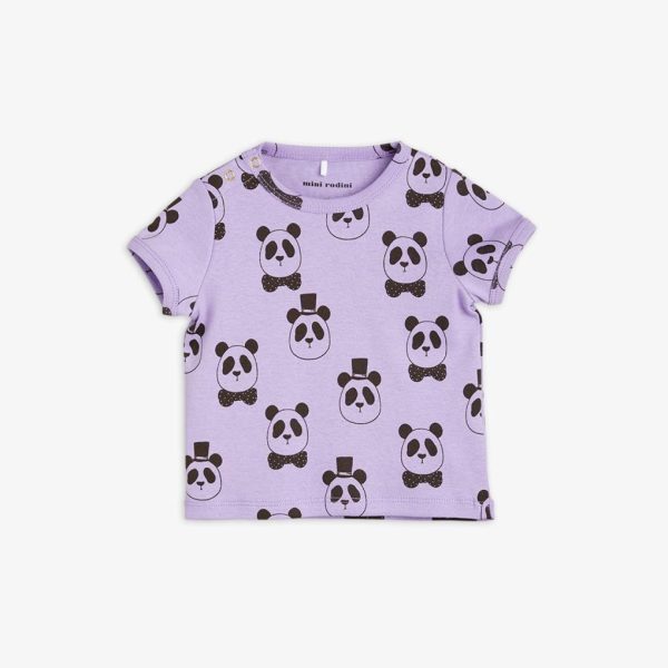 Purple t-shirt with all over Panda print, made from 100 % GOTS certified organic cotton. The t-shirt is designed for a slim fit with bindings at the neck and sleeve endings, as well as snap buttons at the shoulder in the smallest sizes (56/62–68/74) for easy dressing.