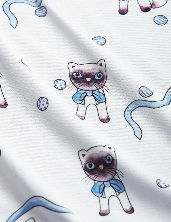 White baby tank top with an all over Siamese Cats print, made from 100 % GOTS certified organic cotton.