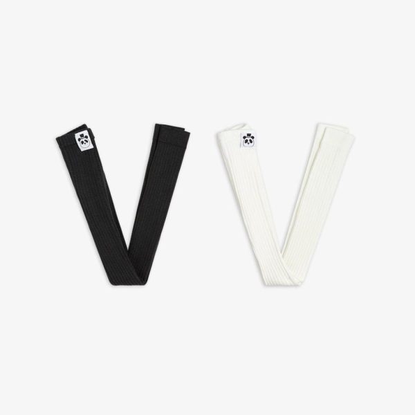 2-Pack ribbed tights with a Mini Rodini Panda-logo sewn on in the front, made from a blend of GOTS-certified organic cotton and polyamide with a hint of stretch. The leggings are designed with a soft elastic waist and cuffs at the bottom.