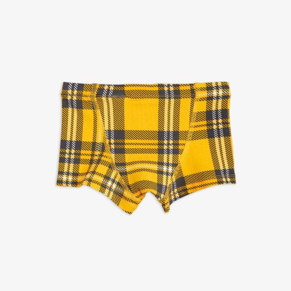Upcycled orange boxers with an all over Check print made from GOTS certified organic cotton with a hint of stretch. Designed with an elastic waistband, a lined gusset and flat seams that makes them extra gentle on the skin.