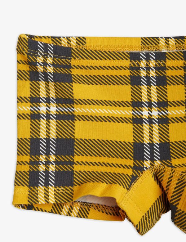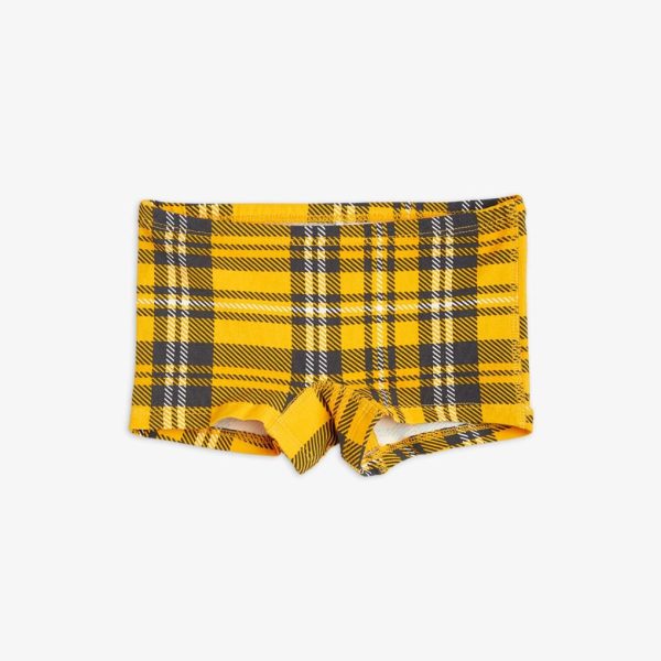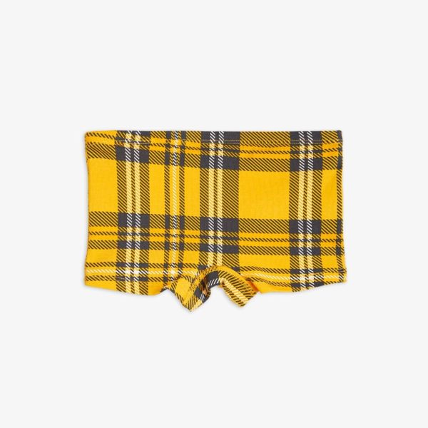 Upcycled orange hipsters with an all over Check print made from GOTS certified organic cotton with a hint of stretch. Designed with an elastic waistband, a lined gusset and flat seams that makes them extra gentle on the skin.