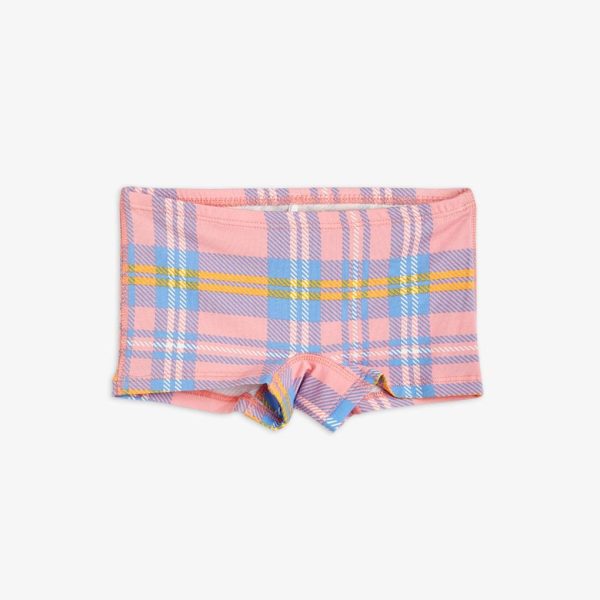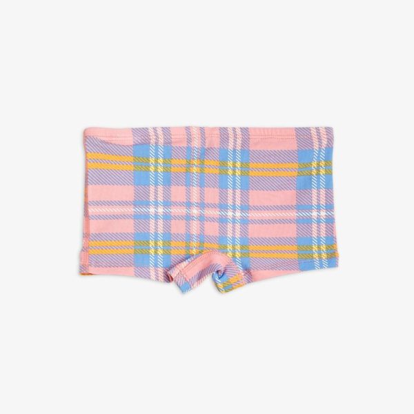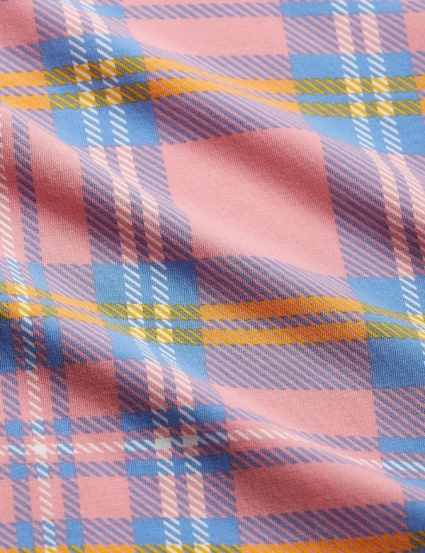 Upcycled pink hipsters with an all over Check print made from GOTS certified organic cotton with a hint of stretch. Designed with an elastic waistband, a lined gusset and flat seams that makes them extra gentle on the skin.